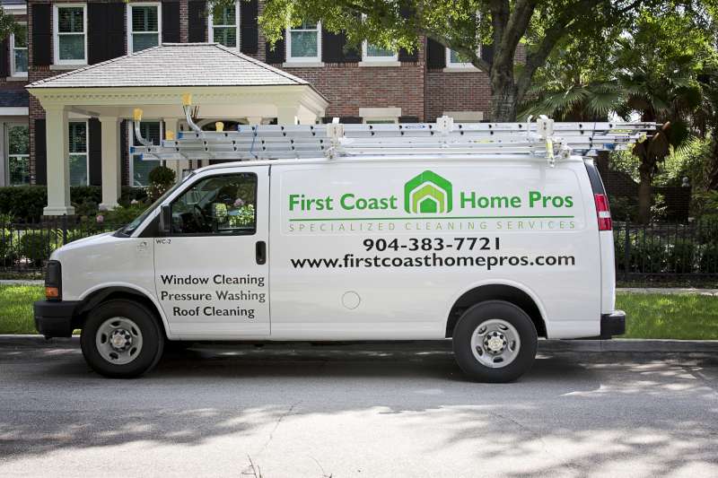 Window cleaning is hard work and it takes skill to achieve a professional shine. Our window cleaners use a meticulous squeegee cleaning system and only the best cleaning products to make your windows look better than they ever have before. Not only will your glass gleam, but you will notice that we pay attention to the big picture as well. The end result of a First Coast Home Pros window cleaning job isn’t just that your windows look great – your whole home glows. We use a top quality biodegradable window cleaning solution containing no phosphates or ammonia, so it won’t harm your glass or your window trim, whether it’s vinyl, metal, or wooden. Our pH neutral professional formula has anti-static properties that repel dirt from glass, keeping your windows looking cleaner longer!